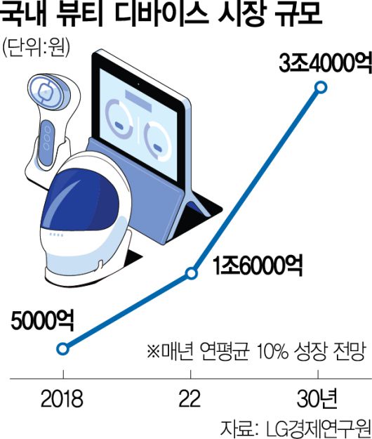 뷰티 디바이스 시장이 팽창하면서 생활가전 업체의 뷰티 업계 진출도 당분간 지속될 것으로 보인다. LG경제연구원에 따르면 국내 뷰티 디바이스 시장은 2018년 5000억 원에서 2022년 1조 6000억 원으로 3배 이상으로 커졌다. 뷰티 디바이스 시장은 2030년까지 연평균 10% 이상 성장하면서 2030년 3조 4000억 원 이상에 달할 것으로 예측된다.