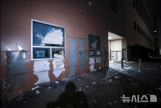 [서울=뉴시스] 황준선 기자 = 지난 1월19일 윤석열 대통령 지지자들의 폭력 사태가 벌어진 서울 마포구 서울서부지방법원의 외벽과 유리창이 파손돼 있다. 2025.01.19. hwang@newsis.com |