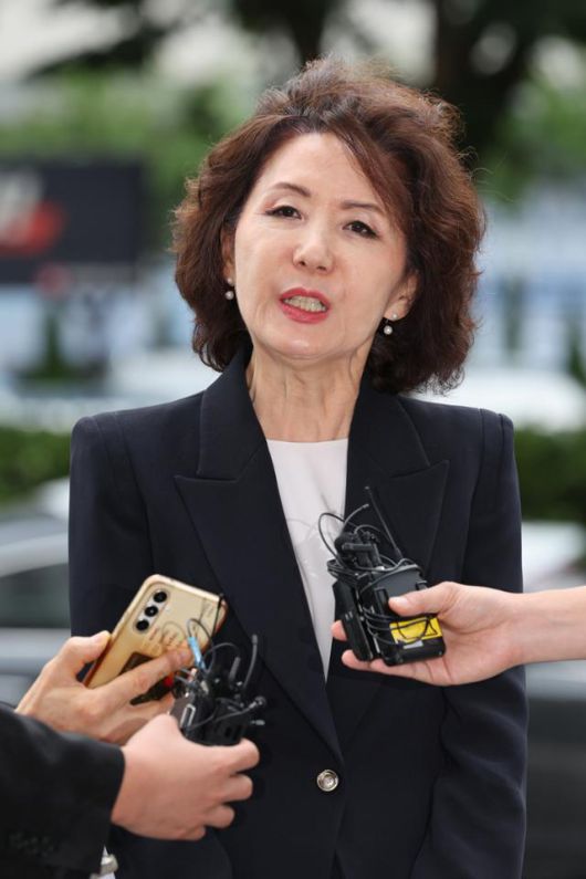이진숙 교육부 장관 후보자가 지난달 30일 서울 여의도 한국교육시설안전원에 마련된 인사청문회 사무실로 출근하며 취재진의 질의에 답변하고 있다.뉴스1 |