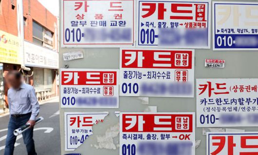 서울 시내 전봇대에 카드 대출 관련 광고가 붙어 있다. 뉴시스 |