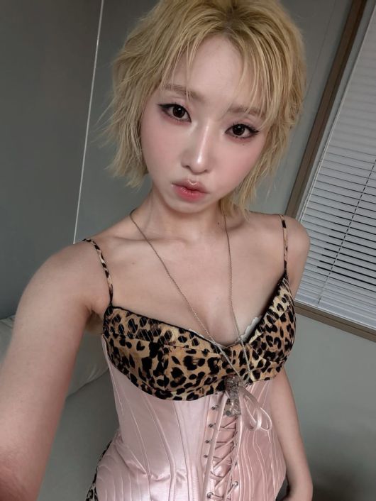 사진 속 공민지는 호피 패턴 원피스 위에 연분홍빛 코르셋을 레이어드한 파격적인 룩으로 시선을 사로잡았다. 글래머러스한 몸매를 강조한 디테일로 섹시하면서도 과감한 룩을 완성했다.