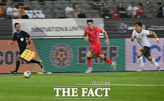 [더팩트ㅣ용인미르스타디움=남용희 기자] 대한민국과 중국의 동아시아축구연맹(EAFF) E-1 챔피언십(동아시안컵) 개막 경기가 7일 오후 경기 용인시 용인미르스타디움에서 열린 가운데 모재현(가운데)이 드리블을 시도하고 있다.