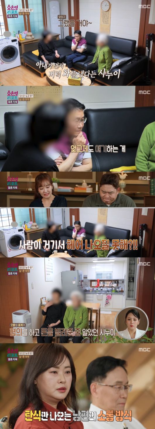 7일 방송된 MBC '오은영 리포트 – 결혼 지옥'에서는 평생 시댁 식구들 편인 것 같은 남편 때문에 외롭다는 아내와 끊임없이 자신에게 누구 편이냐고 묻는 아내를 이해하지 못하는 남편이 등장했다.