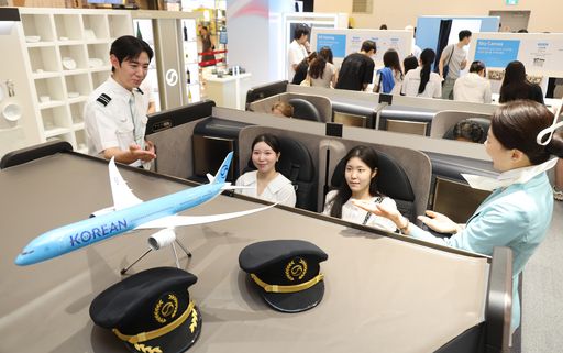 대한항공은 13일까지 서울 강남구 스타필드 코엑스몰에서 신규 기업이미지(CI)를 콘셉트로 한 고객 참여형 팝업스토어 ‘브랜드 뉴 KE : 인 서울(BRAND NEW KE : in Seoul)’을 운영한다고 7일 밝혔다. 사진은 승무원 안내에 따라 대한항공 최신 프레스티지 클래스 좌석을 체험하고 있는 시민들 모습. 이제원 선임기자 ⓒ 세상을 보는 눈, 세계일보