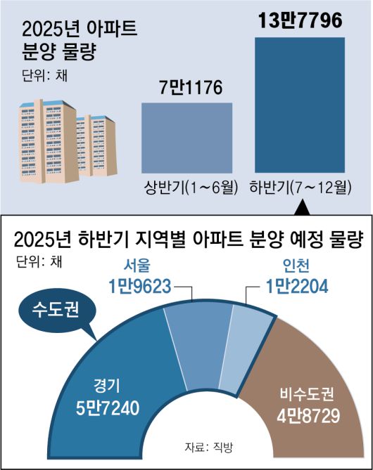올해 하반기(7∼12월) 전국에서 아파트 13만7796채가 공급될 예정이다. 이는 대통령 탄핵과 조기 대선 등의 영향으로 주춤했던 상반기 분양(7만1176채)과 비교했을 때 2배에 가까운 물량이다. 당장 이번 주에도 정부의 6·27 대출 규제를 피한 서울 아파트 청약이 예정돼 있어 관심이 집중될 것으로 보인다.