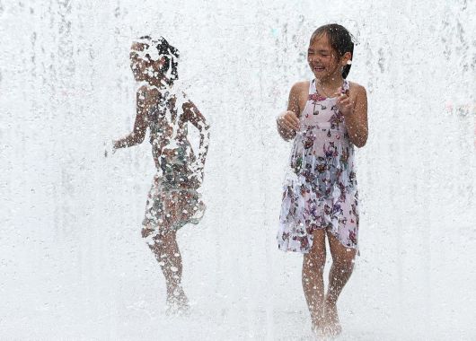 “더위야 물러가라” 7일 서울 종로구 광화문광장 바닥 분수에서 어린이들이 물을 맞으며 더위를 식히고 있다. 이날 서울의 낮 최고기온은 33.2도로 전국 대부분 지역에서 최고 체감온도가 33도를 넘으며 무더위가 계속됐다. 뉴스1 |