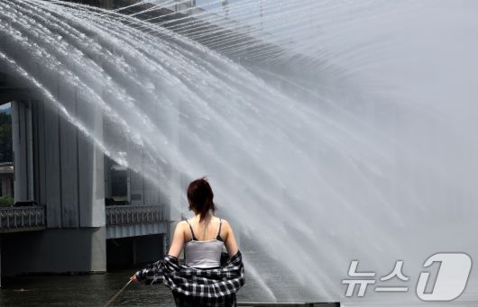 서울 전역에 폭염주의보가 발령된 30일 오후 서울 서초구 반포한강공원에서 시민들이 반포대교 달빛무지개분수를 바라보며 산책을 하고 있다. 2025.6.30/뉴스1 ⓒ News1 이동해 기자 |