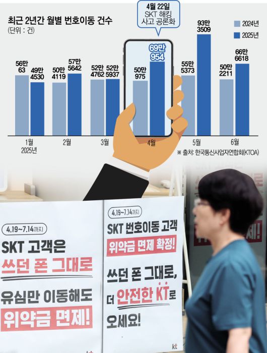 실제로 한국통신사업자연합회(KTOA)에 따르면, 5월 전체 번호이동 수치는 지난해 같은 달 대비 약 68% 증가한 93만3509건이었다. ‘탈 SKT 행렬’에 전체 번호이동 수치도 급격히 증가한 것이다.