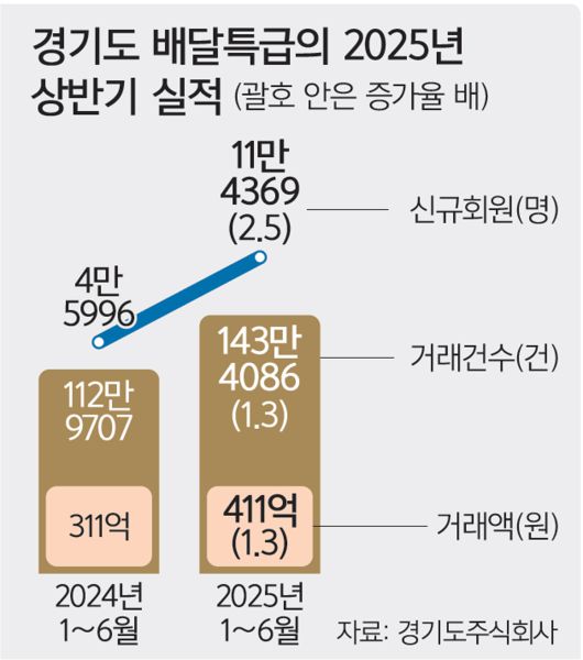 7일 경기도주식회사에 따르면 올해 1∼6월 배달특급의 신규 회원은 11만4000여명이다. 지난해 같은 기간(약 4만6000명)보다 2.5배 늘었다. 주문건수는 약 143만건으로 지난해 동기(113만건) 대비 1.3배 증가했다.