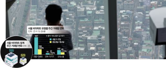 당초 시장에선 6·27 규제로 고가 아파트 매수세가 꺾이면서 비아파트로 수요가 이동할 것이란 기대감이 있었다. 연립·다세대, 단독·다가구 등도 주택법상 ‘주택’으로 분류돼 아파트와 동일하게 규제 대상이지만 상대적으로 가격이 낮아 실수요가 몰릴 수 있기 때문이다. 그러나 1주일이 지난 결과는 아파트·비아파트를 가리지 않고 전반적인 시장 위축으로 나타났다.