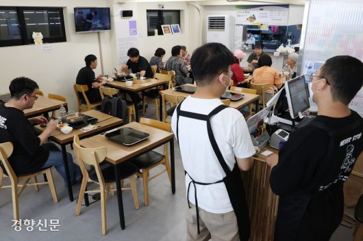 누구나 부담 없이 한 끼를 먹고 힘낼 수 있는 김치찌갯집 ‘청년밥상문간’에는 ‘슬로우’ 지점이 있다. 이곳에서 느린 학습자(경계선 지능인) 청년들이 함께 일한다. 지적이나 다그침 없는 환경에서 청년들은 자신감을 되찾고 사회의 일원으로 성장하고 있다. 청년밥상문간은 순차적으로 모든 지점을 슬로우점으로 전환할 예정이다. 한수빈 기자 |