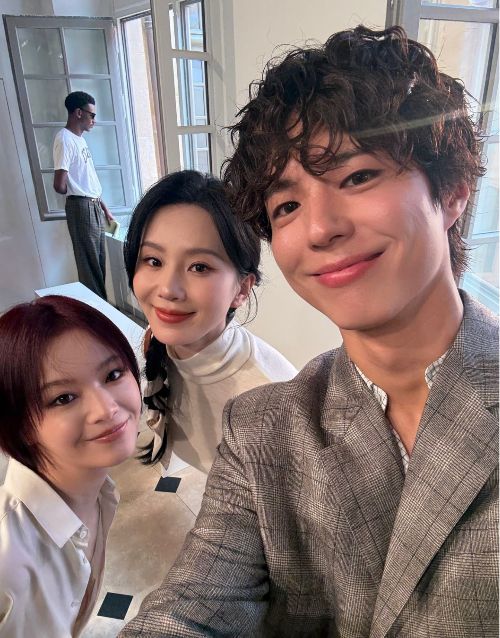 두 번째 셀카 컷에서는 분위기가 달라졌다. 헤어스타일은 그대로였지만, 웃음의 결이 조금 더 부드러워졌다. 함께한 두 여성 스타의 얼굴도 환하게 빛났고, 박보검은 프레임 가장자리에 서서 중심을 양보한 듯한 구도를 택했다.