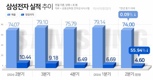아시아투데이 김영진 기자 = 삼성전자가 2025년 2분기 잠정 실적을 발표하며 '어닝 쇼크' 수준의 성적표를 내놨다. 주력인 반도체(DS) 부문의 부진이 실적 하락을 이끌었다.