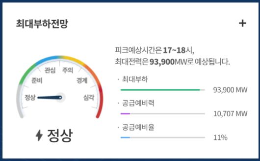 이 시간대 공급예비력은 11.4%, 운영예비력은 10.3%로 떨어질 것으로 예상됐다(그림 참고).