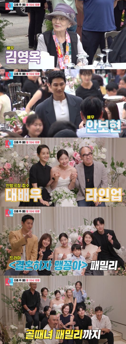 이날 두 사람의 결혼을 축하 하기 위해 김영옥, 안보현 등 배우들부터 '결혼하자 맹꽁아' 팀, 김민경 등 '골때리는 그녀들' 팀이 모두 모여 감탄을 자아낸다.