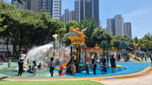 이현공원 어린이 물놀이장은 1040㎡ 규모로 대형 버킷, 미끄럼틀 등 물놀이 시설과 탈의실, 샤워 시설 등을 갖췄다.