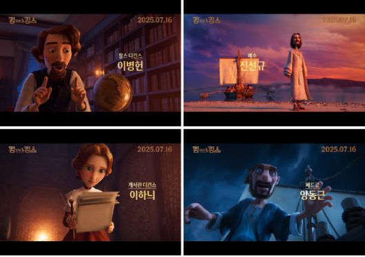 이번에 공개된 예고편에서는 이병헌, 진선규, 이하늬 등 국내 대표 배우들의 목소리를 드디어 확인할 수 있다. 왕 이야기 외엔 관심 없는 아들 ‘월터’에게 ‘캐서린 디킨스’ 역의 이하늬는 “아빠가 굉장한 이야기를 해준다고 말했거든”이라며 아들의 호기심을 자극한다. 이어 ‘찰스 디킨스’ 역의 이병헌이 “천사도 나오고 사악한 왕이랑 질투하는 자들, 그리고 기적까지”라며 이야기의 문을 연다. 그의 말과 함께 빠르게 스쳐 지나가는 군중 장면이 펼쳐지며 현실과 판타지의 경계가 허물어지고, 찰스와 월터는 어느새 2000년 전 위대한 이야기의 한가운데로 들어가게 된다. 또한 ‘예수’ 역의 진선규가 “두려워하지 마라”, “일어나라 때가 되었다”라는 강렬한 대사들을 전하며, 희망과 믿음의 메시지를 깊이 있게 전한다. 짧은 예고편 속에서도 배우들의 목소리는 캐릭터에 생명력을 불어넣으며, 더빙판만의 특별한 감동을 예고한다.