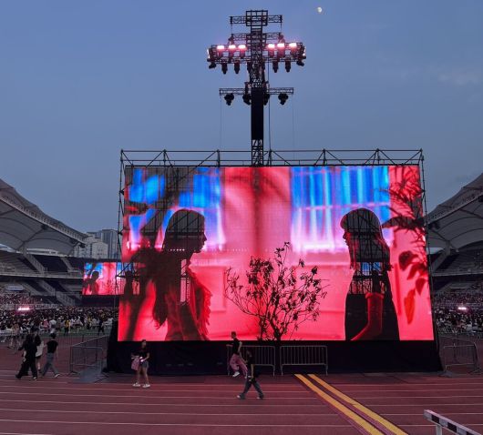 대형 스크린 설치로 무대 시야를 가린 블랙핑크 콘서트. 엑스(X) 갈무리 |