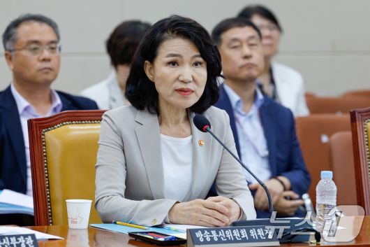 이진숙 방송통신위원장이 7일 오후 서울 여의도 국회에서 열린 제427회국회(임시회) 과학기술정보방송통신위원회 제1차 전체회의에서 위원장 질의에 답하고 있다. 2025.7.7/뉴스1 ⓒ News1 안은나 기자 |