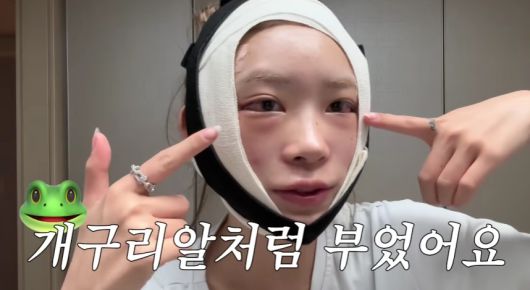 밤이 깊어지자 통증이 줄어들었다는 최준희는 "흰자가 개구리알처럼 부었다. (수술한 지) 하루 됐는데 실루엣이 벌써 마음에 든다. 빨리 부기가 빠졌으면 좋겠다"고 기대했다.
