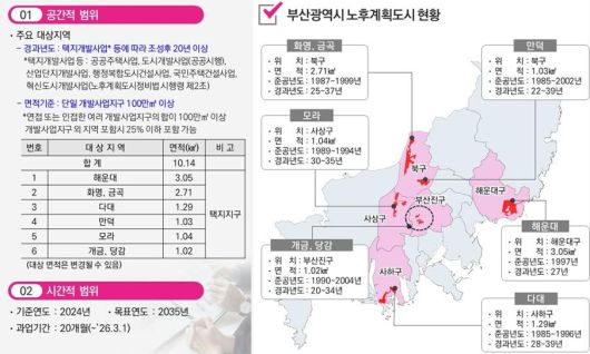 부산시는 노후계획도시 정비 및 지원에 관한 특별법(2024년 4월 27일 시행)과 국토교통부의 노후계획도시 정비기본방침에 따라 노후계획도시정비 기본계획(안)을 마련했다. 기초 지자체가 1기 신도시에 대한 정비계획을 수립해 경기도 특별위원회의 심의와 승인을 받은 것을 것과 달리 광역 지자체인 부산시가 기본계획안을 수립했다. 특·광역시 중 처음이다.