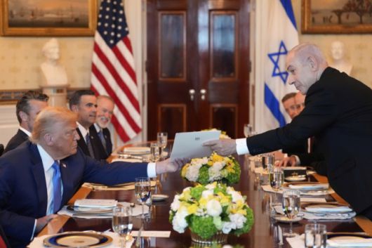 이날 트럼프 대통령과 네타냐후 총리는 백악관에서 참모들과 함께 비공개 만찬을 진행했다. 트럼프 대통령이 지난 1월 취임한 뒤 두 정상이 만난 것은 이번이 세 번째다. 또 이스라엘과 이란의 '12일 전쟁' 중에 트럼프 대통령이 이란 핵 시설을 공격하고 이스라엘과 이란의 휴전을 중재한 지 약 2주 만에 이뤄진 회동이다.