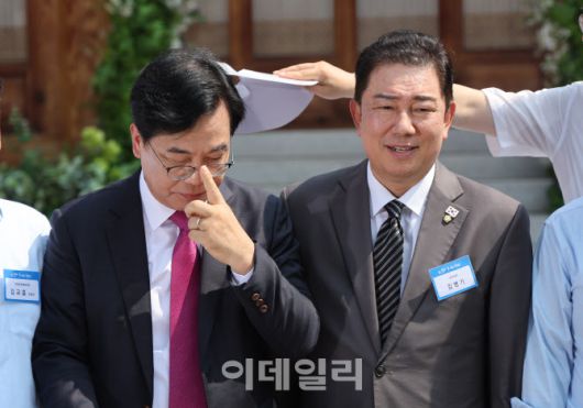 [이데일리 노진환 기자] 김병기 더불어민주당 당대표 직무대행 겸 원내대표와 송언석 국민의힘 비상대책위원장 겸 원내대표가 8일 오전 서울 여의도 국회 사랑재에서 열린 K-바캉스 캠페인에 참석해 있다.