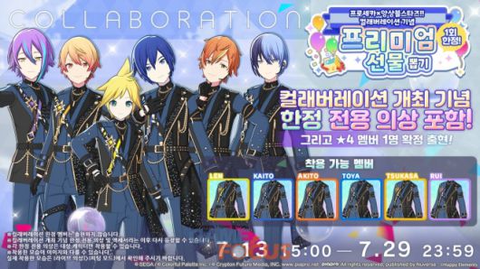 반면 프로세카는 모든 멤버들의 4성 카드가 뽑기로 등장하며 프리미엄 선물 뽑기를 통해 아키토, 토우야, 츠카사, 루이, 렌, 카이토가 착용 가능한 전용 한정 의상 획득이 가능하다.