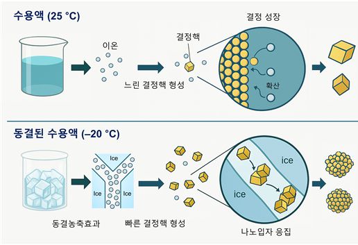 상온 및 동결된 수용액에서 일어나는 광물 형성 메커니즘. |