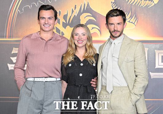 배우 루퍼트 프렌드와 스칼렛 요한슨, 조나단 베일리(왼쪽부터)가 출연한 영화 '쥬라기 월드: 새로운 시작'이 6일 연속 박스오피스 정상을 지켰다. /박헌우 기자 |
