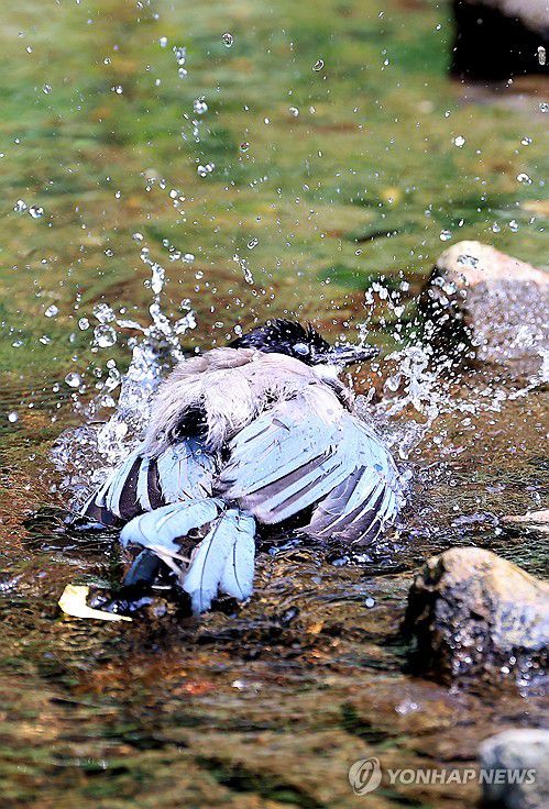 (인천=연합뉴스) 임순석 기자 = 연일 폭염이 이어지고 있는 8일 인천 남동구 장수천에서 물까치가 목욕하고 있다. 2025.7.8 soonseok02@yna.co.kr ▶제보는 카카오톡 okjebo▶연합뉴스 앱 지금 바로 다운받기~▶네이버 연합뉴스 채널 구독하기 <저작권자(c) 연합뉴스, 무단 전재-재배포, AI 학습 및 활용 금지><저작권자(c)연합뉴스. 무단전재-재배포금지.>
