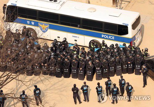 훈련하는 경찰 기동대(서울=연합뉴스) 이진욱 기자 = 윤석열 대통령 탄핵심판 선고를 하루 앞둔 3일 서울 종로구 헌법재판소 인근 운현궁에서 경찰 기동대가 훈련하고 있다. 2025.4.3 cityboy@yna.co.kr ▶제보는 카카오톡 okjebo▶연합뉴스 앱 지금 바로 다운받기~▶네이버 연합뉴스 채널 구독하기<저작권자(c) 연합뉴스, 무단 전재-재배포, AI 학습 및 활용 금지>