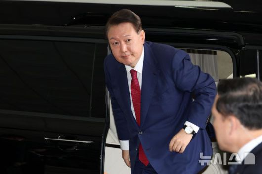 [서울=뉴시스] 배훈식 기자 = 윤석열 전 대통령이 5일 오전 서초구 서울고등검찰청에 마련된 내란특검에서 2차 대면조사를 받기 위해 출석하고 있다. (공동취재) 2025.07.05. photo@newsis.com