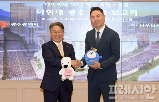 광주광역시(시장 강기정)와 현대백화점그룹은 8일 시청 비즈니스룸에서 '광주 복합쇼핑몰 더현대 광주 착공보고회'를 개최했다.