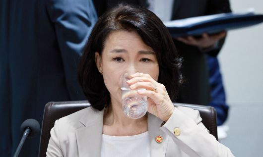 이진숙 방송통신위원장이 8일 용산 대통령실에서 열린 국무회의에 참석해 있다. 대통령실통신사진기자단 |
