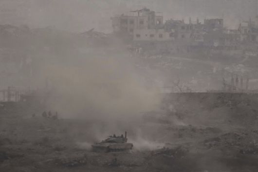 지난 3일(현지 시간) 이스라엘군 전차가 가자지구를 향해 기동하는 모습이 이스라엘 남부에서 관측되고 있다. /AP=뉴시스 |