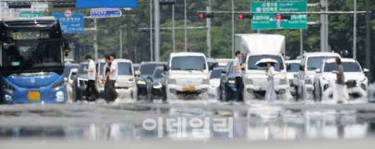 [이데일리 방인권 기자] 전국적으로 폭염 경보가 발효 중인 8일 서울 여의도 여의대로에 아지랑이가 피어오르고 있다.