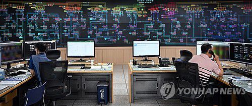 (수원=연합뉴스) 권준우 기자 = 폭염이 이어지고 있는 8일 경기 수원시 영통구 한국전력공사 경기본부 전력관리처 계통운영센터에서 관계자들이 전력수급상황을 주시하고 있다. 2025.7.8 [공동취재]