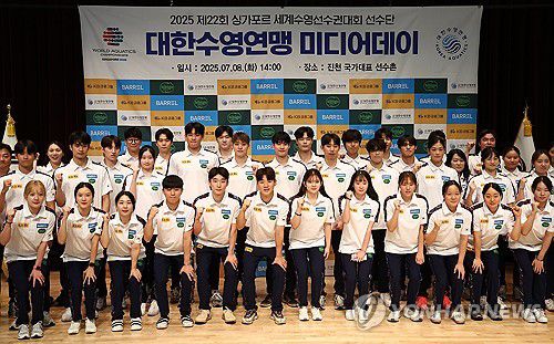(진천=연합뉴스) 김성민 기자 = 수영 국가대표팀 선수들이 8일 충북 진천 국가대표선수촌에서 기념 촬영을 하고 있다. 2025.7.8 ksm7976@yna.co.kr ▶제보는 카카오톡 okjebo▶연합뉴스 앱 지금 바로 다운받기~▶네이버 연합뉴스 채널 구독하기 <저작권자(c) 연합뉴스, 무단 전재-재배포, AI 학습 및 활용 금지><저작권자(c)연합뉴스. 무단전재-재배포금지.>