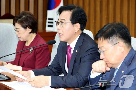 송언석 국민의힘 비상대책위원장 겸 원내대표가 8일 오전 서울 여의도 국회에서 열린 원내대책회의에서 발언하고 있다. 2025.7.8/뉴스1 ⓒ News1 이광호 기자 |