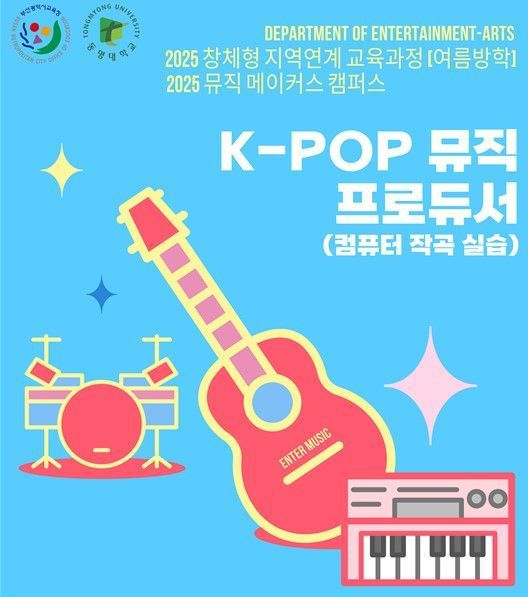 동명대학교(총장 이상천)가 부산시교육청의 2025학년도 창의적 체험활동형 지역연계교육과정에 선정돼 여름방학 중 고등학생 대상 'K-Pop 뮤직프로듀서(컴퓨터 작곡 실습)' 강좌를 운영한다.