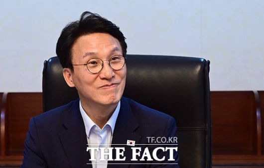 [더팩트ㅣ임영무 기자] 김민석 국무총리가 8일 오후 서울 종로구 정부서울청사 집무실에서 업무를 보며 미소 짓고 있다.