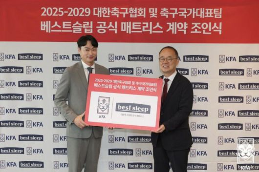 한편, 대한축구협회는 종근당에 이어 이번 베스트슬립까지 올해 두 개의 업체와 공식 협찬 계약을 체결하며 총 7개사로부터 협찬을 받게 됐다.