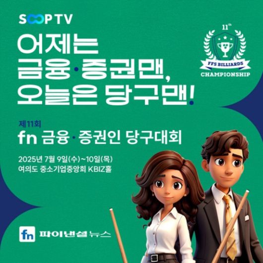 '제11회 fn 금융·증권인 당구대회'는 파이낸셜뉴스가 주최하는 대회로, 9일(수)부터 10일(목)까지 서울 여의도 중소기업중앙회 kbiz홀에서 열린다.