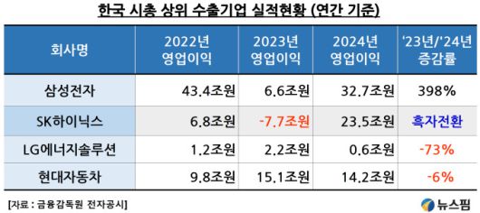 하지만 시가총액 최상위 기업들의 실적은 편차가 크다. 삼성전자의 2024년 영업이익은 전년 대비 398% 폭증한 32조7000억원을 기록했다. SK하이닉스는 사상 최대치인 23조5000억원이다. 하지만 LG에너지솔루션은 5753억원으로 전년 대비 -73%의 부진한 실적을 보였다.