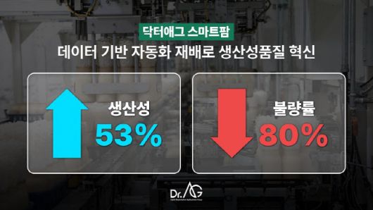 농업 현장에 적용된 닥터애그의 스마트팜 솔루션은 실제로 생산성과 품질의 획기적인 개선을 이끌어냈다. 스마트팜 도입 전후를 비교 분석한 결과, 자체 평가 기준 생산성이 50% 이상 향상됐다.