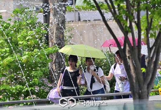 폭염에 갖힌 도심, 분수대에서 더위 잊어요! (사진=안희영 기자) |