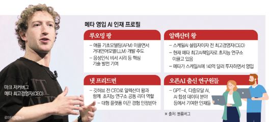 마크 저커버그 메타 최고경영자(CEO)는 AI 두뇌 확보를 위해 공격적으로 나서고 있으며, 그 결과 메타 초지능 연구소에는 관련 인재들이 속속 합류하고 있다. 이미 알렉산더 왕 스케일AI 공동창업자, 다니엘 그로스 세이프 슈퍼인텔리전스(SSI)공동 창업자, 냇 프리드먼 깃허브 전 CEO 등을 고액 연봉으로 영입하는 데 성공했다.