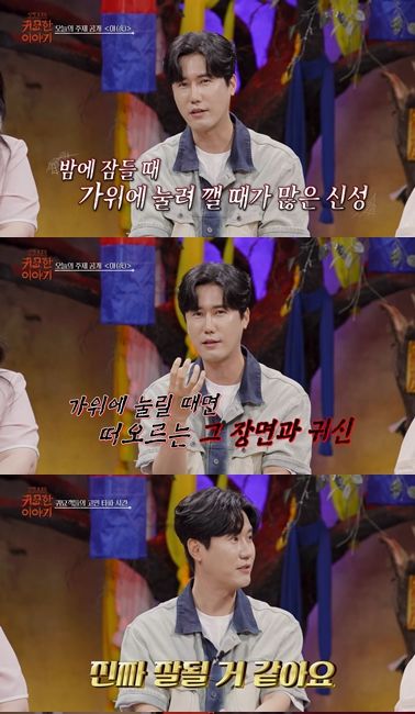 이에 귀묘객으로 출연한 신성은 “저는 사실 밤에 잠이 들면 가위에 눌렸다가 깰 때가 많다”며 “5~6살 때 시골집에서 자고 있다가 깼는데 창문 사이로 얼굴이 하얗고 머리가 까만 처녀귀신이 노려봤다. 그 때 트라우마 때문에 지금도 가위에 눌리면 그 귀신이 나오지 않을까 무섭다”고 털어놨다.