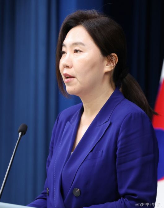 (서울=뉴스1) 허경 기자 = 강유정 대통령실 대변인이 8일 서울 용산구 대통령실 청사에서 국무회의 관련 브리핑을 하고 있다. 2025.7.8/뉴스1 Copyright (C) 뉴스1. All rights reserved. 무단 전재 및 재배포, AI학습 이용 금지. /사진=(서울=뉴스1) 허경 기자 |